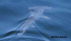 Shifting baselines and the decline of pelagic sharks in the Gulf of MexicoJulia Baum and Ransom A. Myers Ecology Letters, February 2004 |  | Less than 1% of oceanic whitetip sharks - thought to have been the most common warm-water oceanic shark just fifty years ago - remain in the Gulf of Mexico today. "This tragedy is caused by continued overfishing and the demand for a single luxury item - sharkfin soup," says Dr. Ransom Myers, a world-leading fisheries biologist based at Dalhousie University in Halifax.